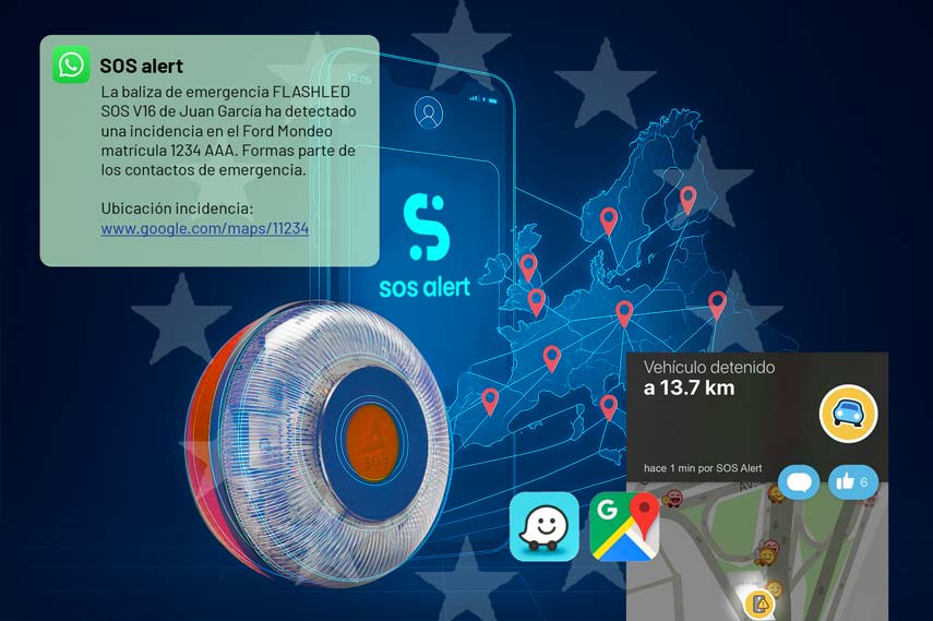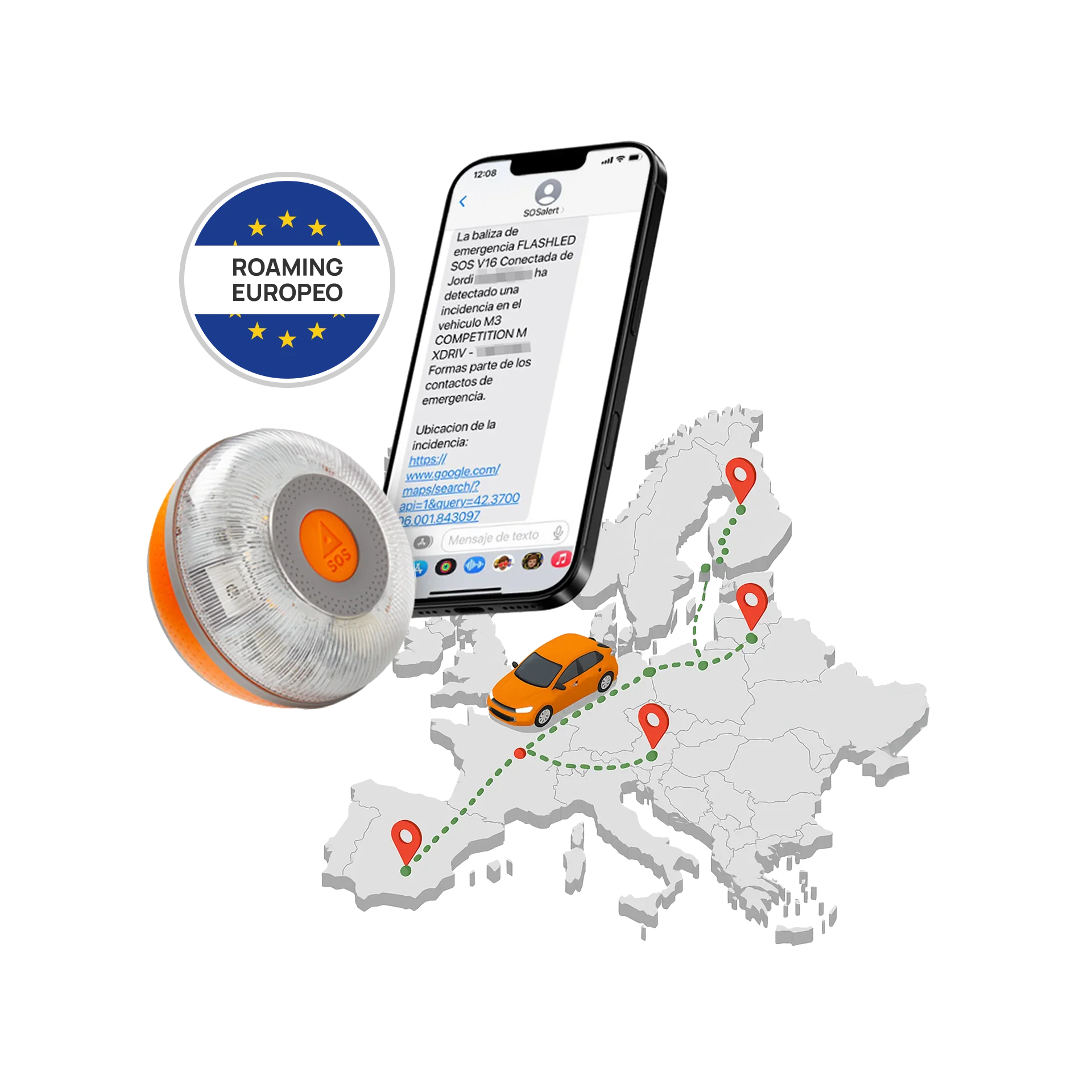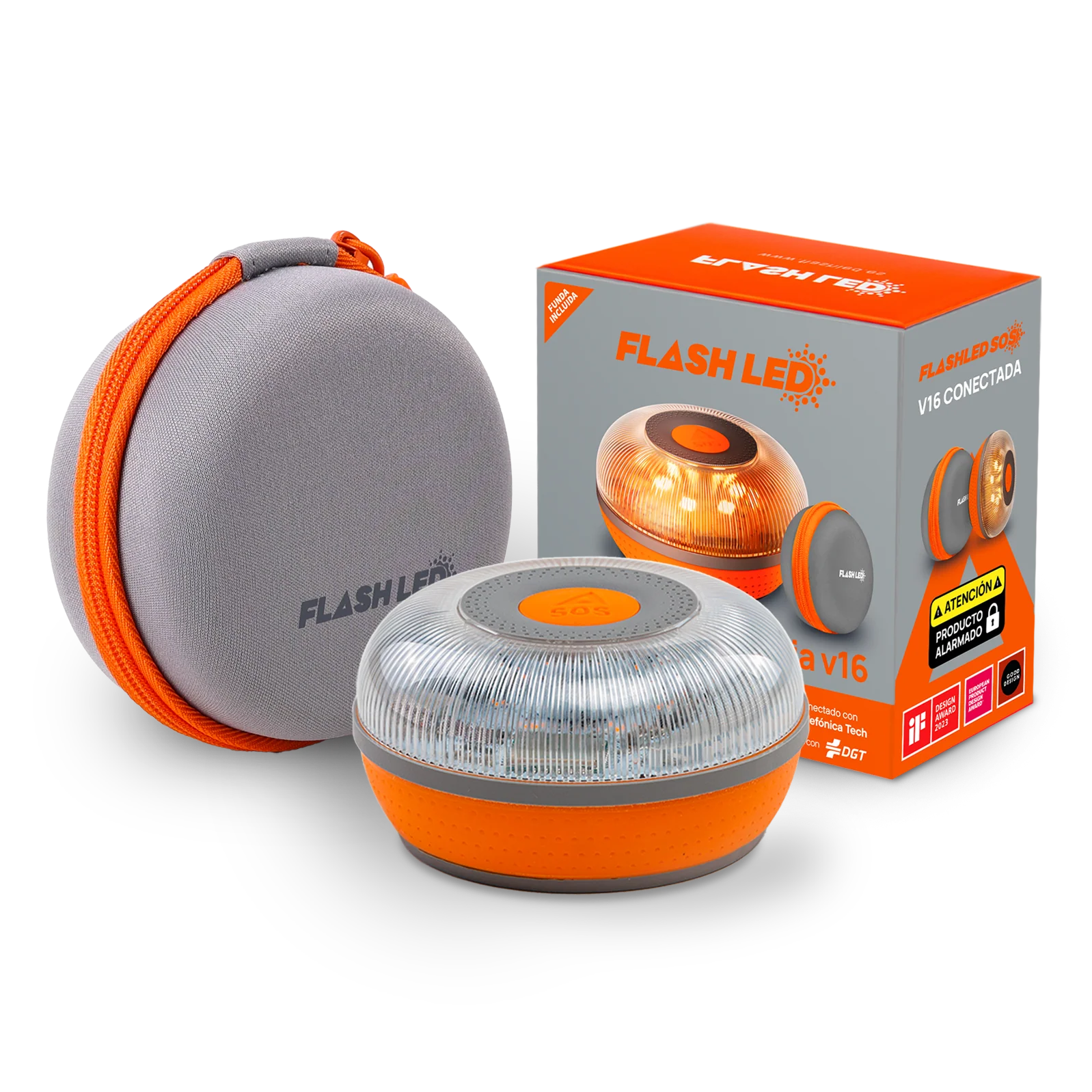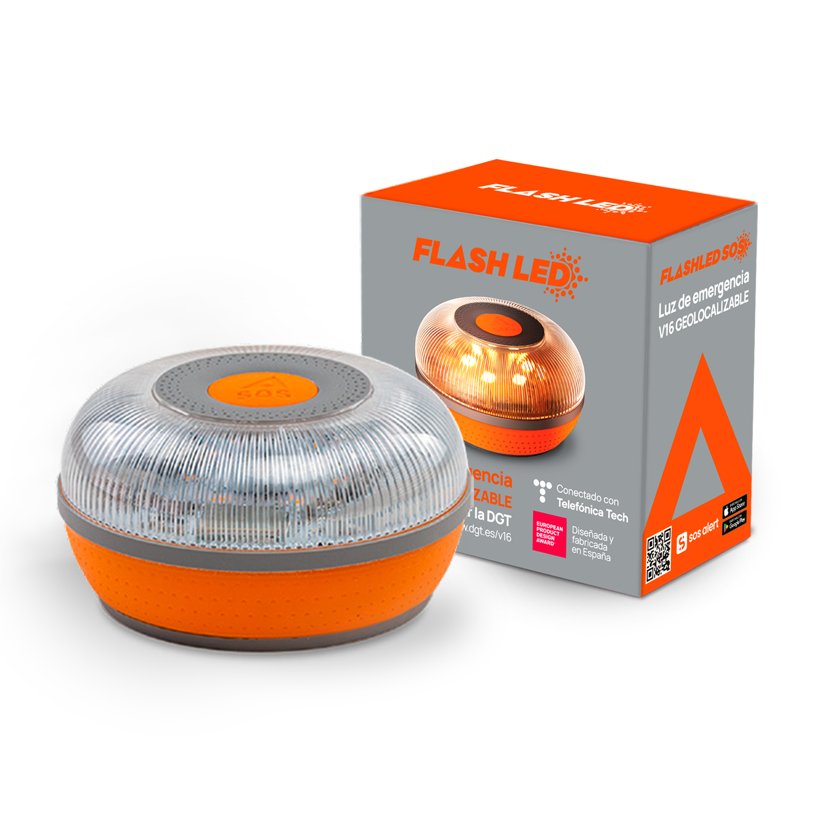 FlashLED SOS es la baliza V16 geolocalizada que hace que tus viajes sean más seguros. Está certificada por la DGT, diseñada y fabricada en España, y es la única en el mercado con Roaming europeo.